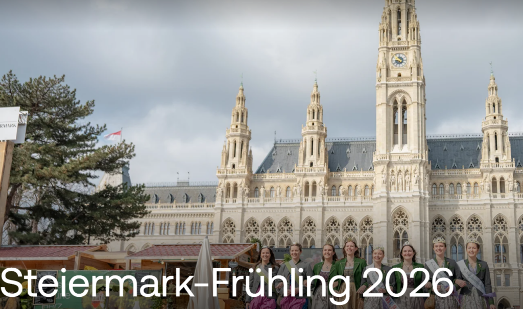 Von 8. bis 12. April 2026 wird der Wiener Rathausplatz wieder zum Treffpunkt für steirische Kulinarik, Musik, Handwerk und Gastfreundschaft: Dann findet der 27. Steiermark-Frühling